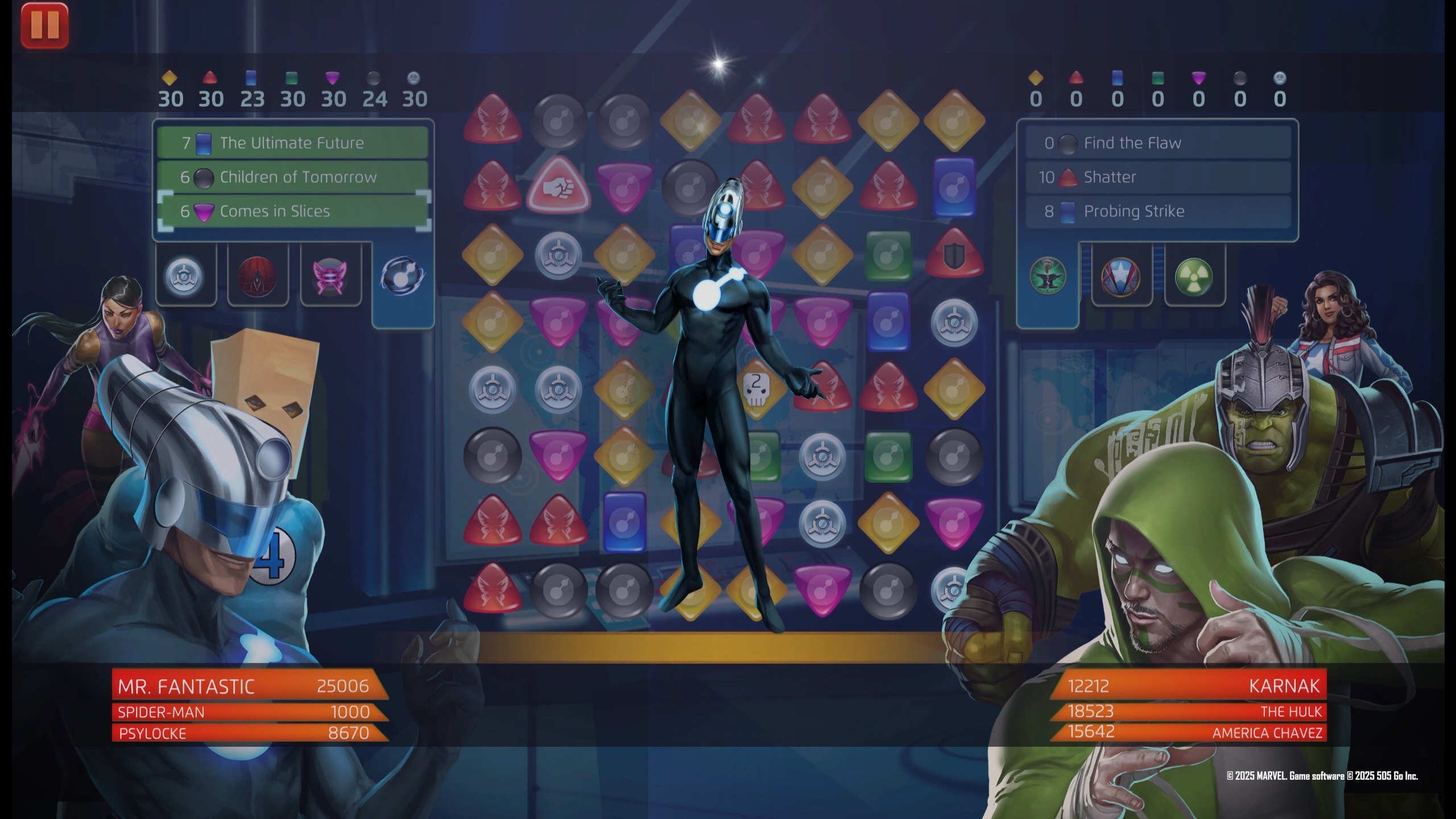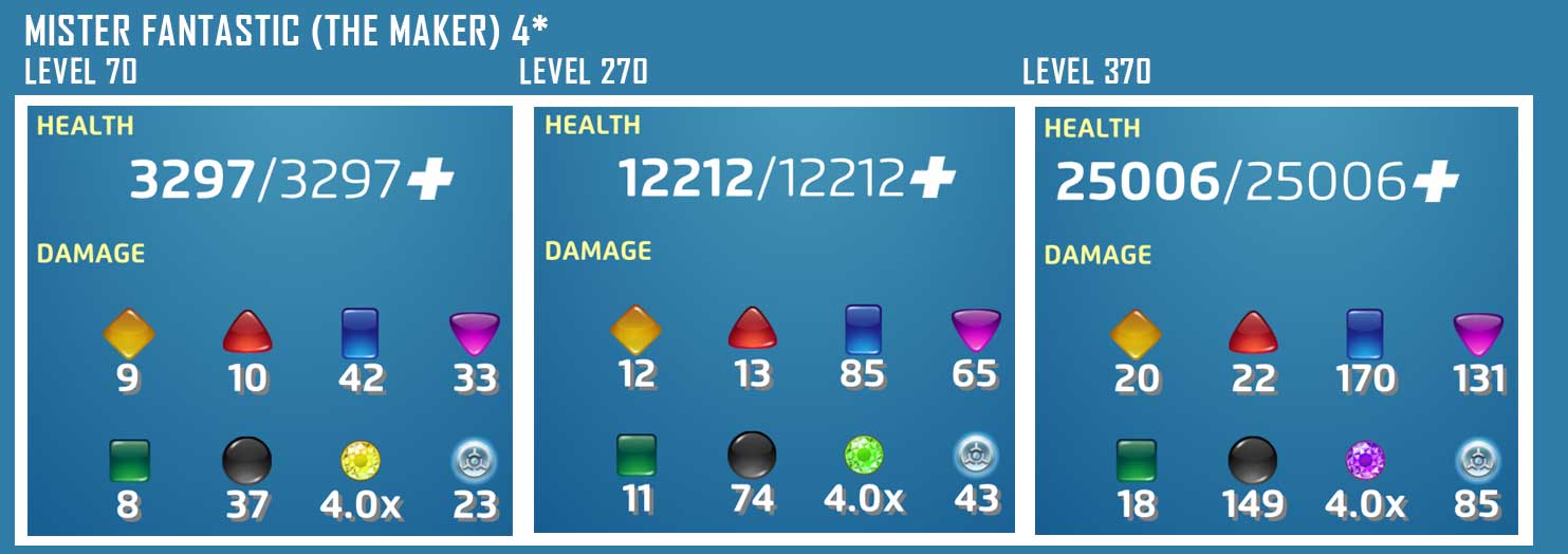(PASSIVE) Mr. Fantastic starts with 25 Progress. Whenever he makes a non-Attack special tile, create a strength 49 Attack tile. This Passive is always unlocked.